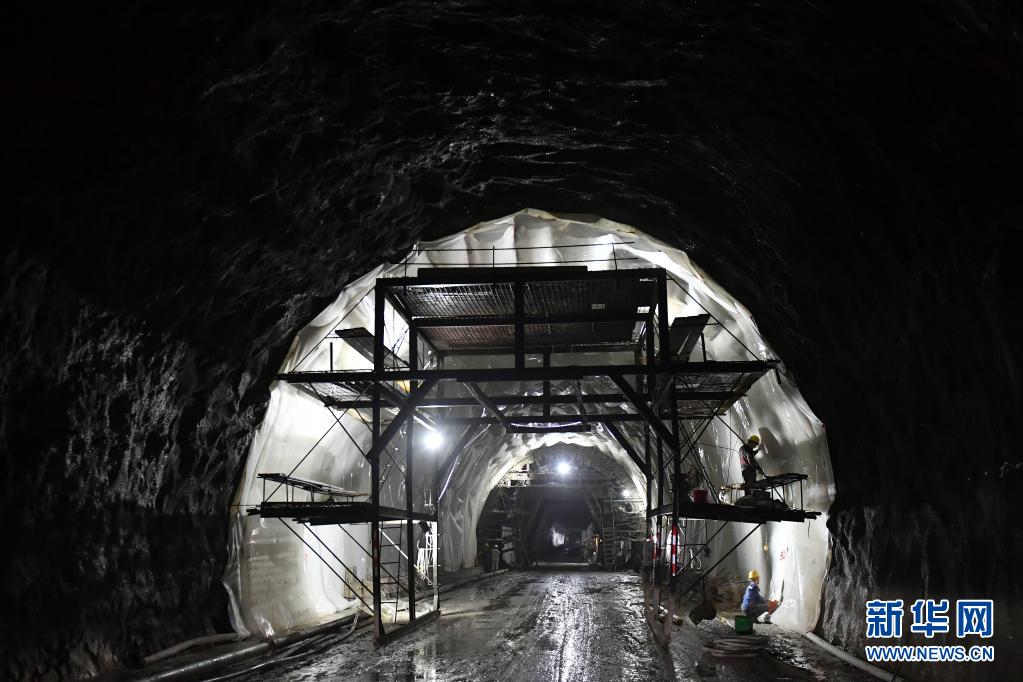 6月30日,工人在派墨公路老虎嘴隧道内进行二次衬砌施工。新华社记者 孙瑞博 摄